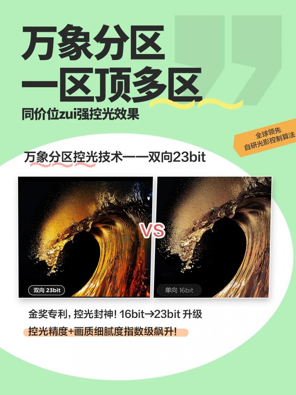 觀影體驗堪稱驚艷。萬象分區技術是一大亮點,1056 個萬象分區從背光到成像全鏈路進行技術突破。看電影時,暗場深邃純粹無光暈干擾,亮場明亮清晰細節分毫畢現。比如看戰爭片,夜晚戰場上的火光和黑暗中的士兵身影清晰呈現,畫面層次感和立體感超強。