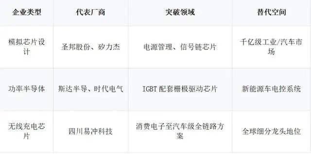 經(jīng)過多年發(fā)展,中國模擬芯片產(chǎn)業(yè)已經(jīng)具備了相當(dāng)?shù)募夹g(shù)基礎(chǔ)和產(chǎn)能規(guī)模。2024年我國模擬芯片自給率約16%,消費電子等領(lǐng)域國產(chǎn)化率相對較高,而工業(yè)、汽車等中高端市場尚有廣闊替代空間。