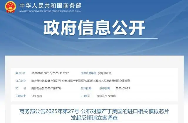 2025年9月13日,中國商務(wù)部宣布對美國進口的40nm及以上工藝通用接口芯片(如CAN收發(fā)器、RS485)和柵極驅(qū)動芯片(IGBT/MOSFET配套)發(fā)起反傾銷調(diào)查。