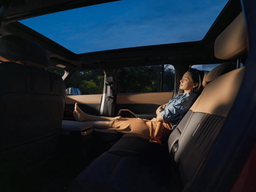 在場景創(chuàng)新上,新車以“36境”全場景解決方案精準(zhǔn)覆蓋多元需求。尾門集成“切配+烹飪”雙分區(qū)承重桌板,搭配同級(jí)最強(qiáng)6.6kW外放電功能,支持電磁爐、咖啡機(jī)等多臺(tái)電器同時(shí)運(yùn)行,5分鐘即可搭建完備“山野廚房”,讓戶外手沖咖啡、精致料理輕松實(shí)現(xiàn)。純電版160L防水前備箱可直接沖洗,配合“釣魚模式”的魚竿固定裝置,徹底解決漁具收納與異味問題;“小憩模式”則能快速變身都市休憩空間,座椅自動(dòng)放平、遮陽簾關(guān)閉,同步聯(lián)動(dòng)白噪音與空調(diào),成為高效“充電”的第三空間。更有“麻將模式”一鍵展開側(cè)邊帳,打造360度遮陽避雨的“戶外客廳”,滿足社交需求。
