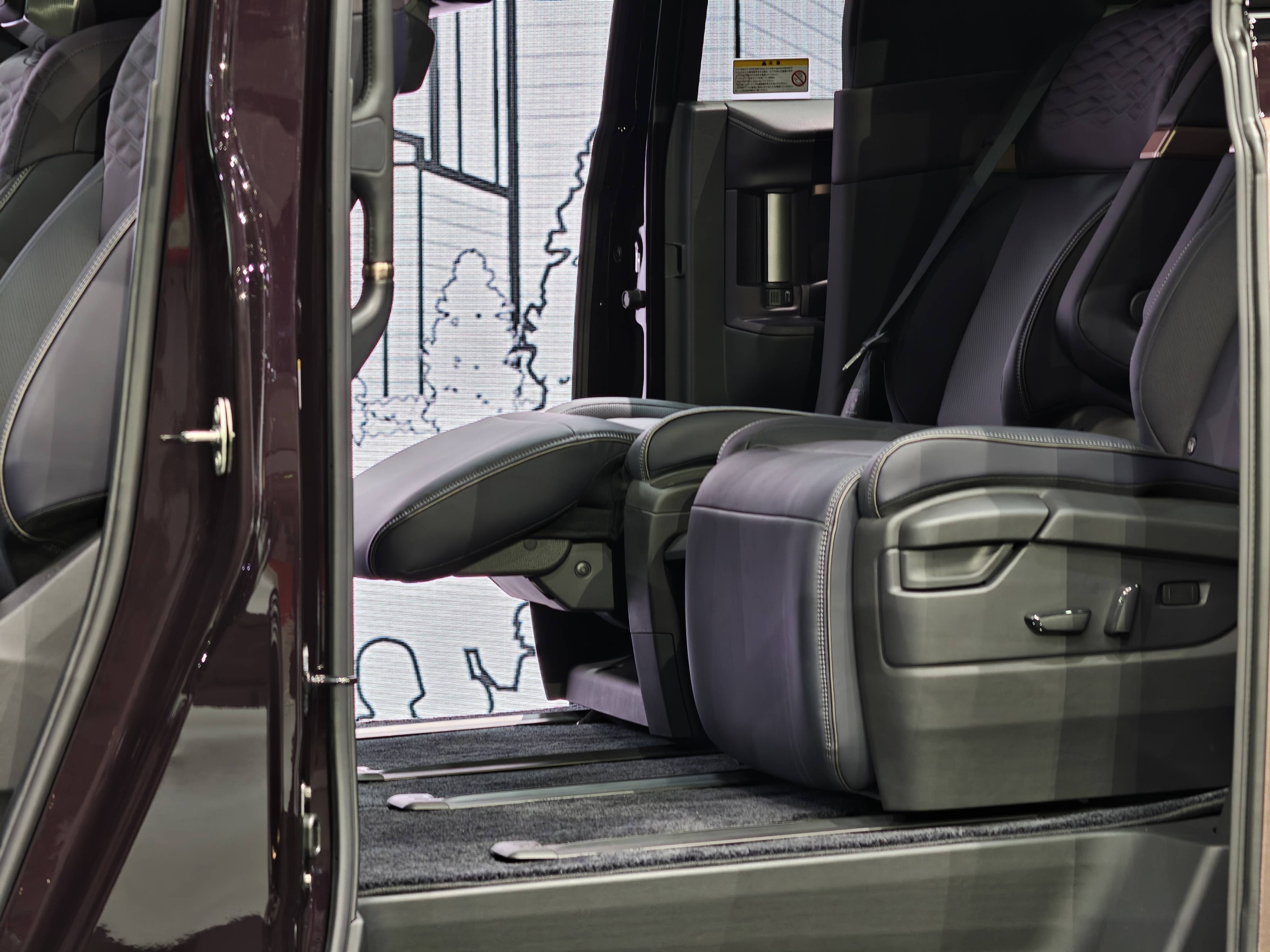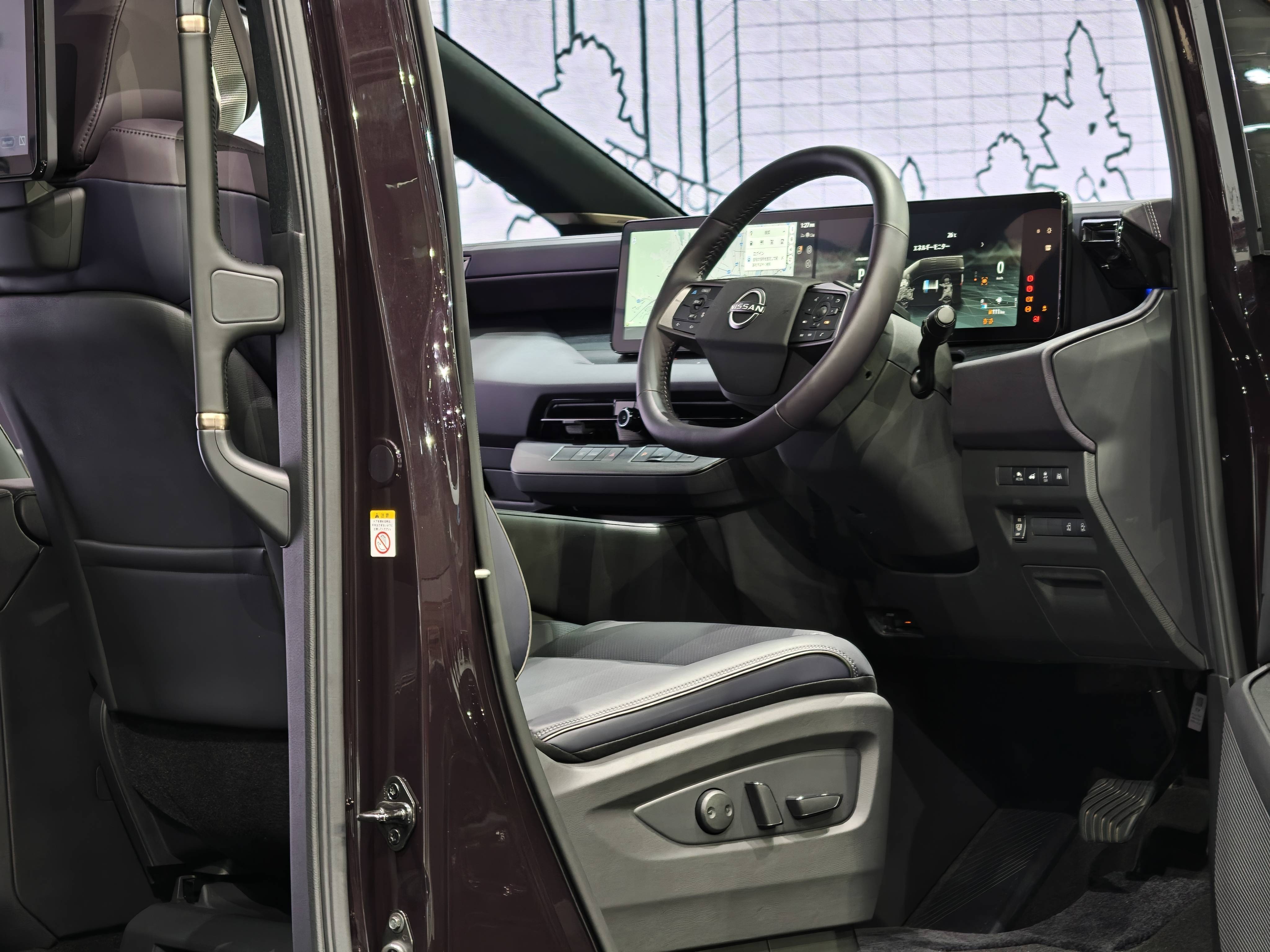 內飾方面,全新ELGRAND使用雙14.3英寸的雙聯(lián)屏,前IP臺設計和Ariya接近,而副駕和后排后座椅都有腿拖設計,第二排座椅采用招財貓獨立后座椅,但是提供了零重力模式。并且第三排座椅可以移動到靠近后尾門的位置、完全不提供行李箱空間,據(jù)說可以擴大50mm的第三排空間。