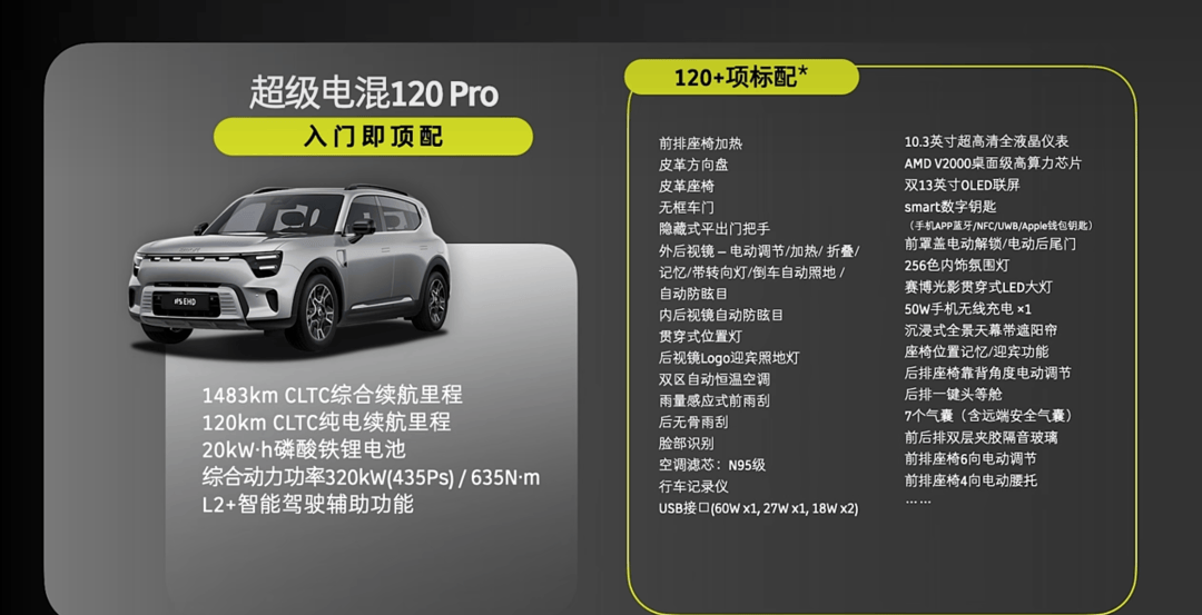 首先是“120Pro”,指導(dǎo)價18.99萬,疊加限時權(quán)益后,售價為16.99萬。