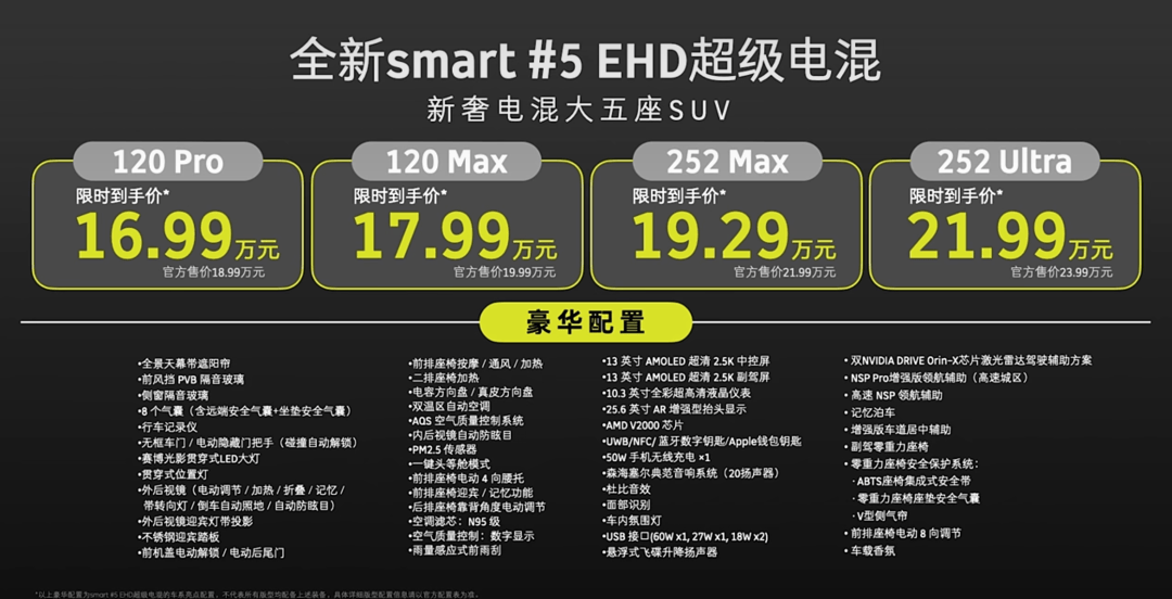 最后是頂配的“252Ultra”,指導(dǎo)價23.99萬,權(quán)益價21.99萬。