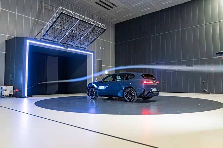 回到新世代iX3的開發過程:當測試車置于風洞中心時,周圍無多余干擾,噪音來源純粹且極易捕捉,這讓iX3的NVH(噪聲、振動與聲振粗糙度)開發從一開始就站在了高起點上。實驗室17級強風對應的模擬時速高達250km/h,而iX3在開發的每個階段,都會在此進行嚴苛測試——從車身造型、底盤結構,到輪胎選型,甚至車內振動引發的細微噪音,都會被精準捕捉,其精度能達到厘米級別。這種“精準定位噪音源、抽絲剝繭解問題”的模式,不僅大幅提升開發效率,更讓降噪效果的準確度和精確度達到無可比擬的水準。