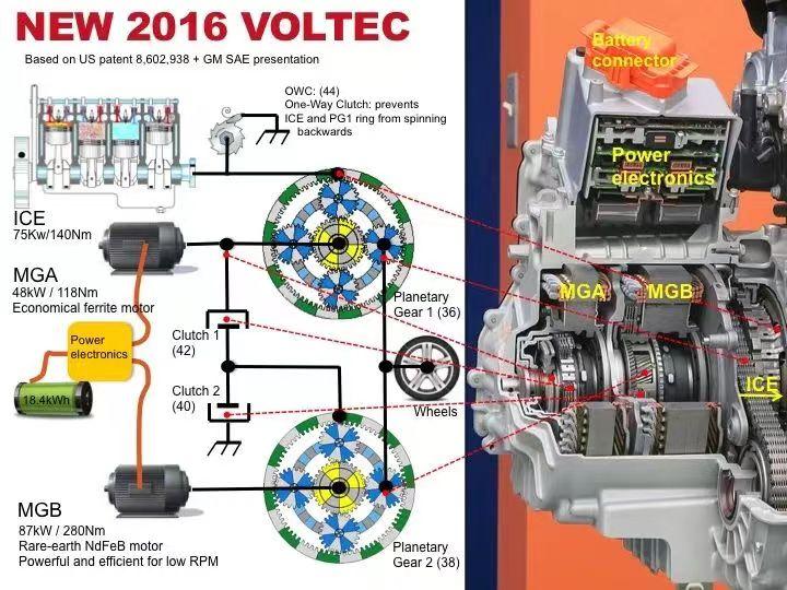 第五代DM-i技術通過引入采用雙離合器來控制動力流向,實現發電機和驅動電機的雙電機純電驅動模式,減少發動機的低效運轉,降低油耗,通過進一步優化電控系統,強化“電為主、油為輔”的設計邏輯,在市區使用時提升電池包的價值,解決了在高速直驅時無法同時發電的問題,提高了系統的效率