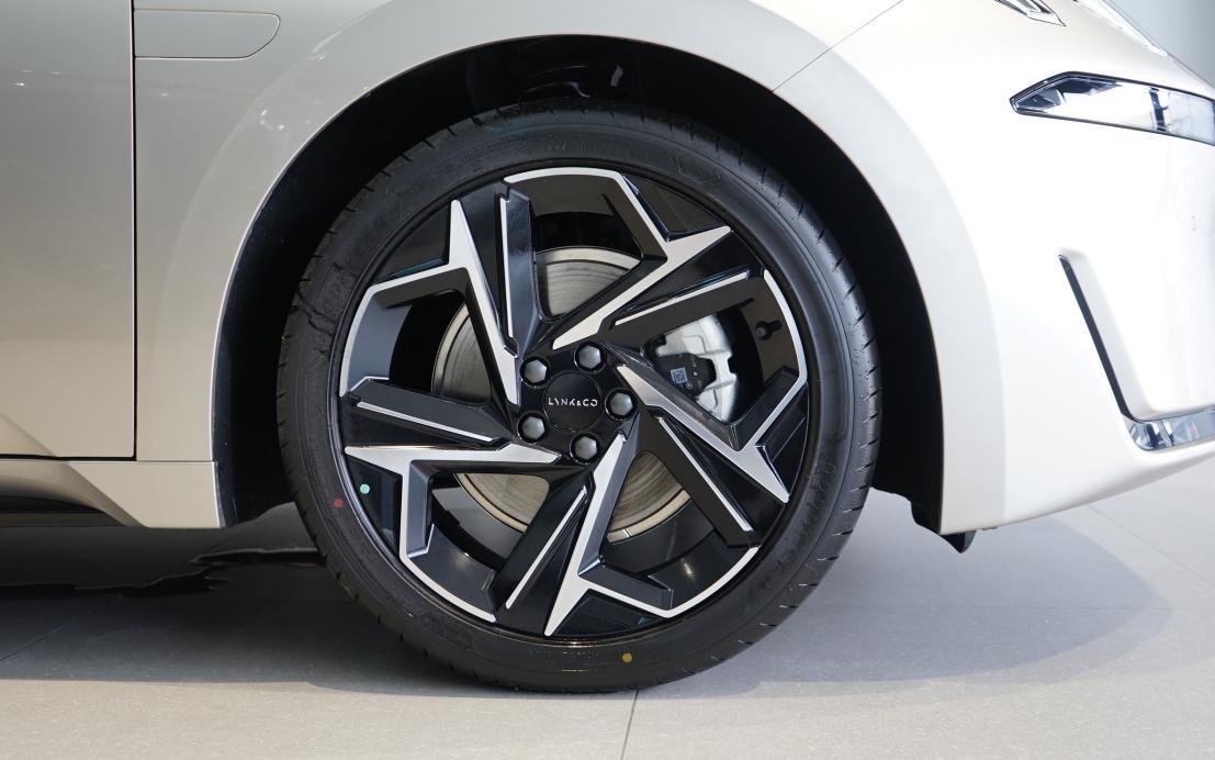 19英寸雙色輪圈造型有運(yùn)動(dòng)感,輪胎尺寸為245/40 R19,胎寬充足,胎壁較薄,我們估計(jì)量產(chǎn)車輪胎不會(huì)這么運(yùn)動(dòng)。匹配固特異ElectricDrive電動(dòng)車專用胎,抓地性能出色,還有不錯(cuò)的靜音效果。