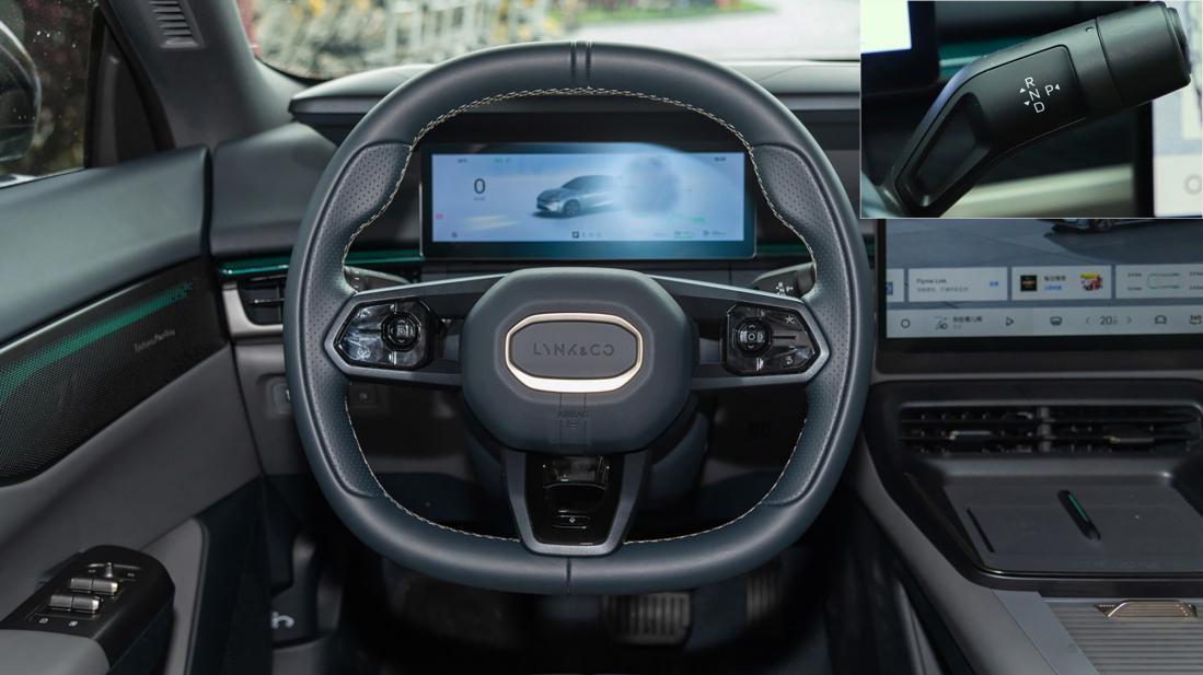 三輻方向盤(pán)與領(lǐng)克08相同,上半環(huán)較大,便于觀看儀表屏。真皮材質(zhì)觸感舒適飽滿,尺寸合適。兩側(cè)皮面增加打孔,內(nèi)襯有縫線。橫輻上的多功能控制區(qū)按鍵,增加4向按鍵,用起來(lái)比較順手,左側(cè)控制L2級(jí)駕駛輔助系統(tǒng),將語(yǔ)音按鍵布置在下方條幅,也很特別。右后方布置了懷擋式電子擋位,可實(shí)現(xiàn)無(wú)感式上車。