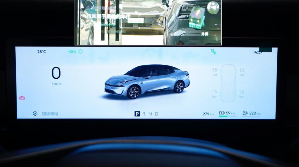 車廂風(fēng)格也與領(lǐng)克08相似,橫向拉伸的中控臺(tái)嵌入了立體的氛圍燈帶,門(mén)板燈帶在飾板內(nèi)部發(fā)光,顯得特別。內(nèi)飾用料也很用心,中控臺(tái)和門(mén)板頂部采用豐富的軟膠,下方容易觸摸部分增加麂皮材質(zhì),加上23喇叭哈曼卡頓音響,硬件給的扎實(shí)。依然提供全液晶儀表屏、15.4英寸中控屏和92英寸AR-HUD抬頭顯示組成的交互系統(tǒng),帶來(lái)豐富的感官體驗(yàn)。