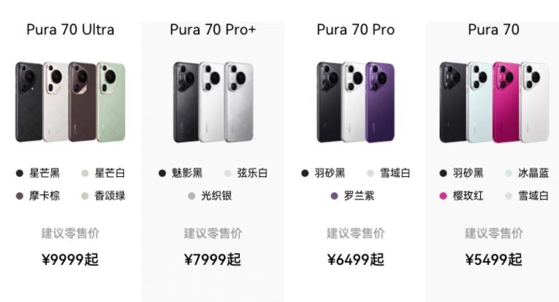 該系列共有4大版本,包括Pura70、Pura70 Pro、Pura70 Pro+、Pura70 Ultra,從命名也可以看出來,一款比一款高級。