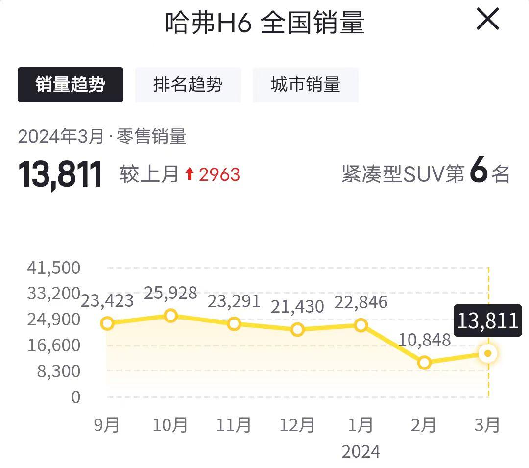 哈弗H6可以說(shuō)是哈弗品牌甚至是整個(gè)長(zhǎng)城汽車(chē)絕對(duì)的銷(xiāo)量主力,自2011年推出至今累計(jì)銷(xiāo)量已超過(guò)400萬(wàn)輛,曾累計(jì)103個(gè)月獲得國(guó)產(chǎn)SUV銷(xiāo)量排名第一。不過(guò)隨著同級(jí)別競(jìng)爭(zhēng)對(duì)手的增多,以及新能源車(chē)型的快速發(fā)展,這款車(chē)如今的銷(xiāo)量相比之前下滑不少。