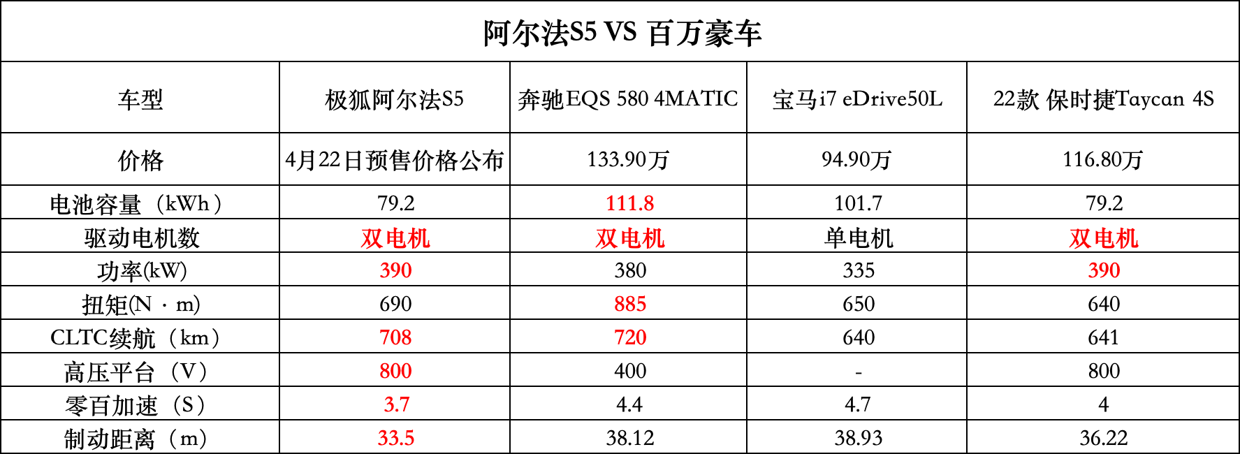 而且通過主要參數(shù)對比,我們可以發(fā)現(xiàn),在動力性能、續(xù)航、加速等方面,阿爾法S5均具備了比肩百萬級豪車的實力,尤其是風阻系數(shù)僅為0.1925Cd,是目前量產(chǎn)車中最低的。