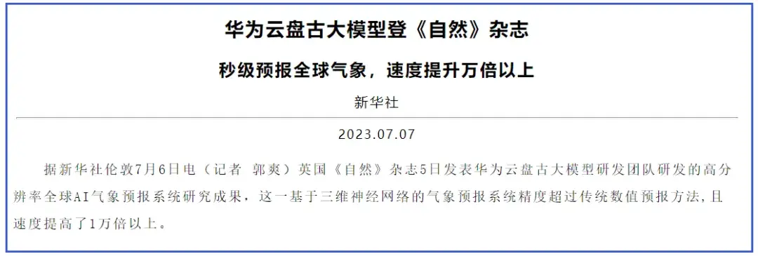 值得一提的是,華為云的盤古氣象大模型竟然登上了《自然》正刊,這是學術界頂級榮譽,對華為科研實力的肯定。