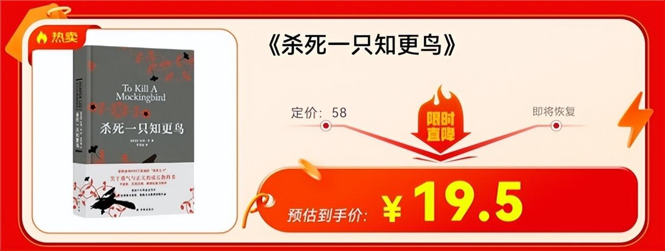 好的書籍猶如一座巨大的寶庫,不同的人可以在里面挖到屬于自己的寶藏。《殺死一只知更鳥》是美國作家哈珀·李的作品,書中的每一個故事都有它獨特的魅力和深邃的思想,讓我們對善與惡、是與非的理解有新的思考和認(rèn)識。這樣一部被翻譯成四十多種語言,全世界銷售超過三千萬冊樣經(jīng)典好書,京東圖書423活動期間到手價僅需19.5元。