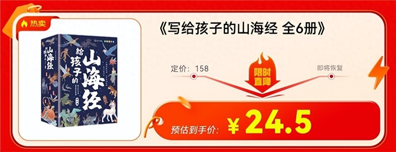 童書繪本像一粒小小的種子,撒在孩子們的心田,開出絢爛的花。《寫給孩子的山海經(jīng) 全6冊》以生動有趣的方式向孩子們展示了中國古代神話傳說的魅力,讓他們在輕松愉快的閱讀中增長知識、拓寬視野,原價158元,京東圖書423活動期間到手僅需24.5元。