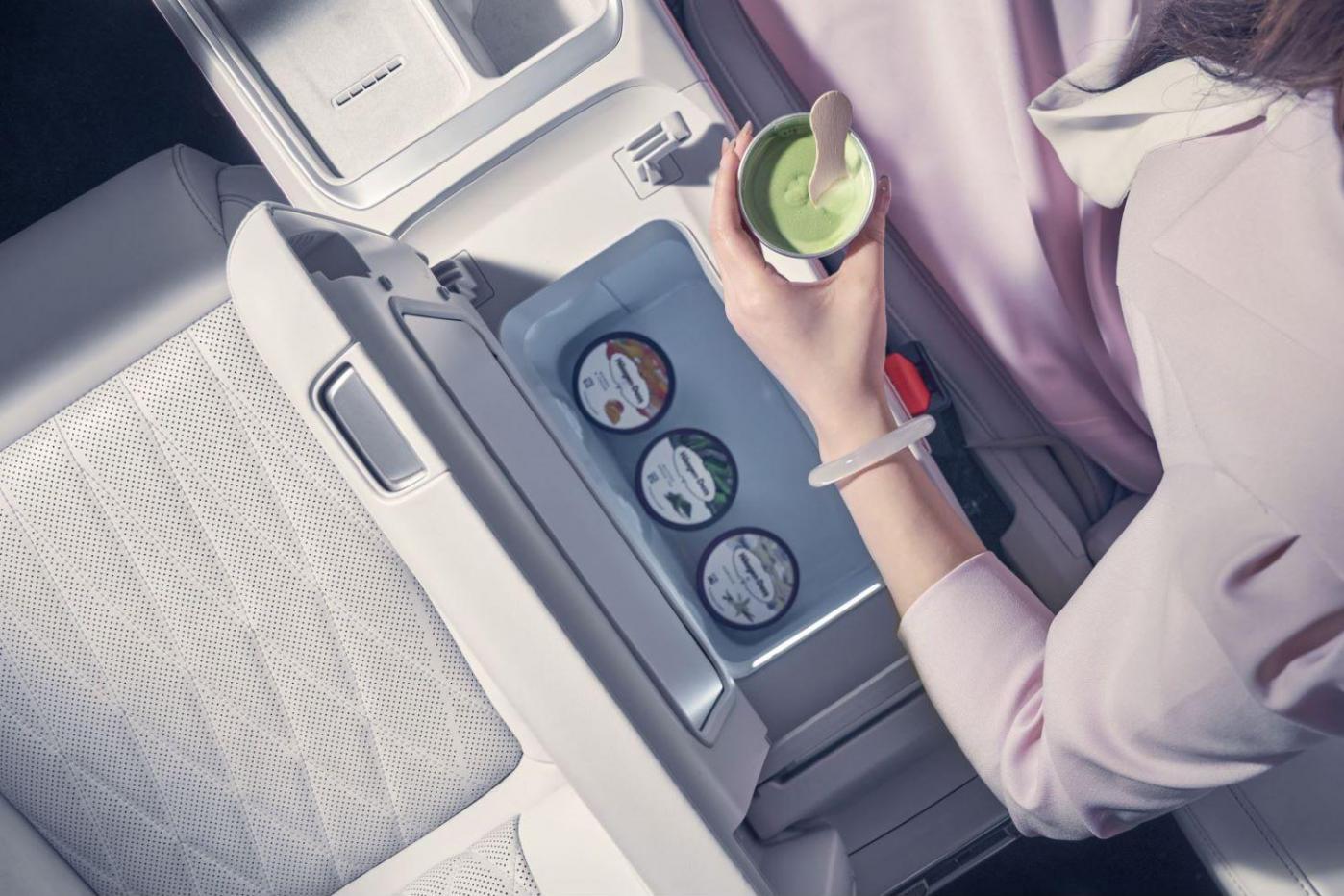 哪吒L還裝備了更好的“冰箱、彩電、大沙發”,其中獨立冰箱采用獨立壓縮機、雙開門,最低制冷溫度零下6℃,鎖車還能持續工作,2天不到1度電。
