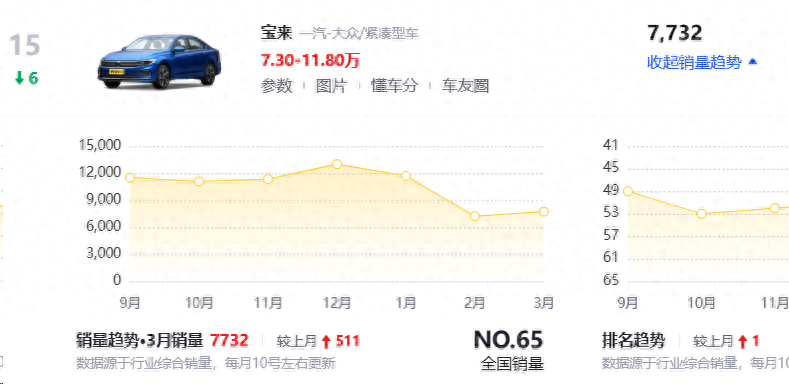 不過,近兩年來,來自于一汽大眾的寶來似乎有些掉隊(duì),數(shù)據(jù)不會(huì)騙人:在過去的兩個(gè)月里,寶來的月銷量均未能超過8000輛,近半年來,其最高月銷量也“僅”有13010輛,而這款車上一次月銷量超過2萬輛還是在2022年的9月份。那么,曾經(jīng)銷量不輸朗逸的寶來為何為一蹶不振呢?接下來咱們就一起來說說看。
