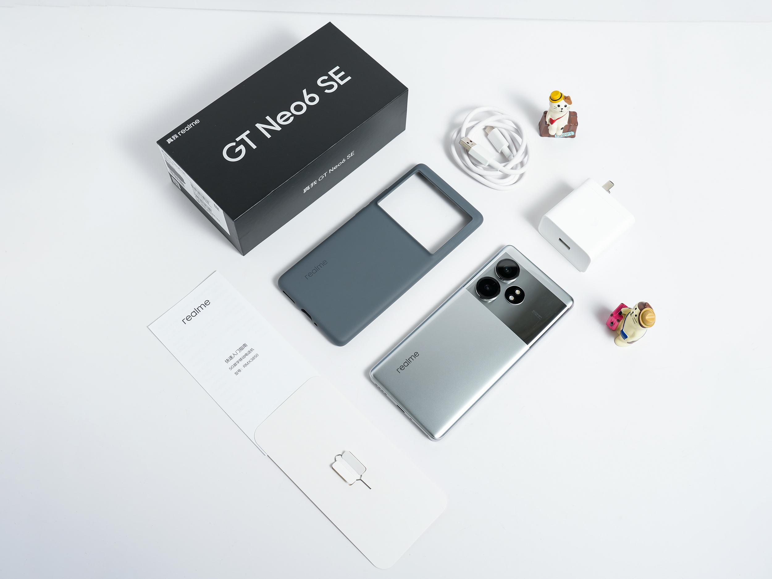 包裝盒內(nèi)配件信息,真我GT Neo6 SE延續(xù)傳統(tǒng)自帶原廠保護套,以及出廠貼膜已貼好,對于消費者非常友好,手機到手即可使用節(jié)省了用戶使用成本。