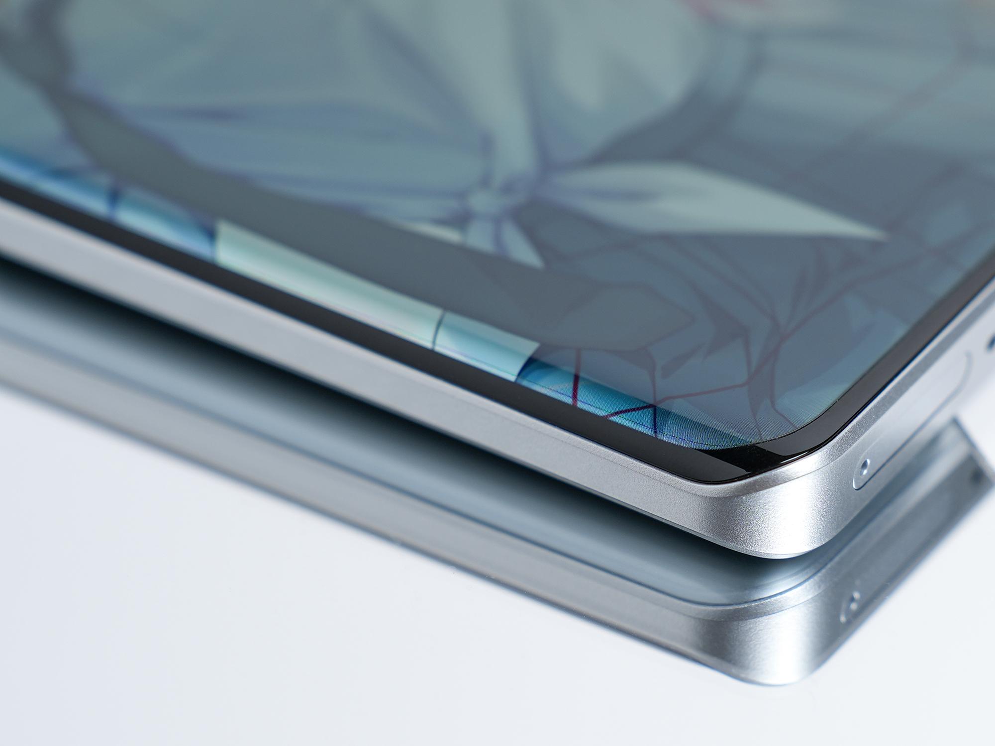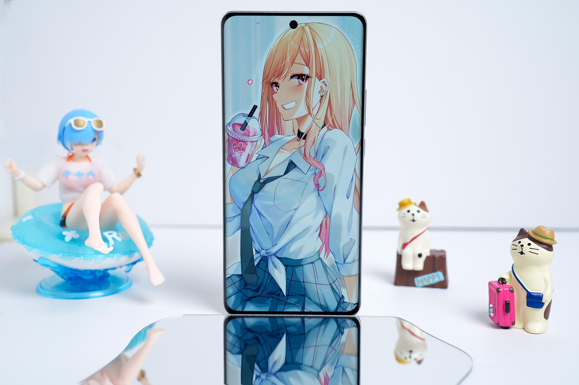 我這臺手機配色為GT Neo6 SE系列主打的「流銀騎士」配色,科技感非常強,正面采用是一塊1.5k分辨率,6.78英寸微曲面屏,手指觸控操作滑過邊緣時很舒適;居中挖孔前置攝像頭,配合窄下巴和窄邊框,亮屏后屏占比很高,整體的視覺觀感挺震撼。