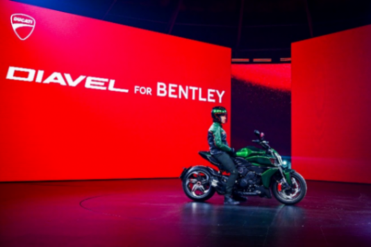 杜卡迪 Diavel for Bentley 限量版摩托車擁有全新的設(shè)計(jì)以及獨(dú)特而精致的部件和特殊的專屬涂裝,并且融合了Bentley Batur的風(fēng)格元素