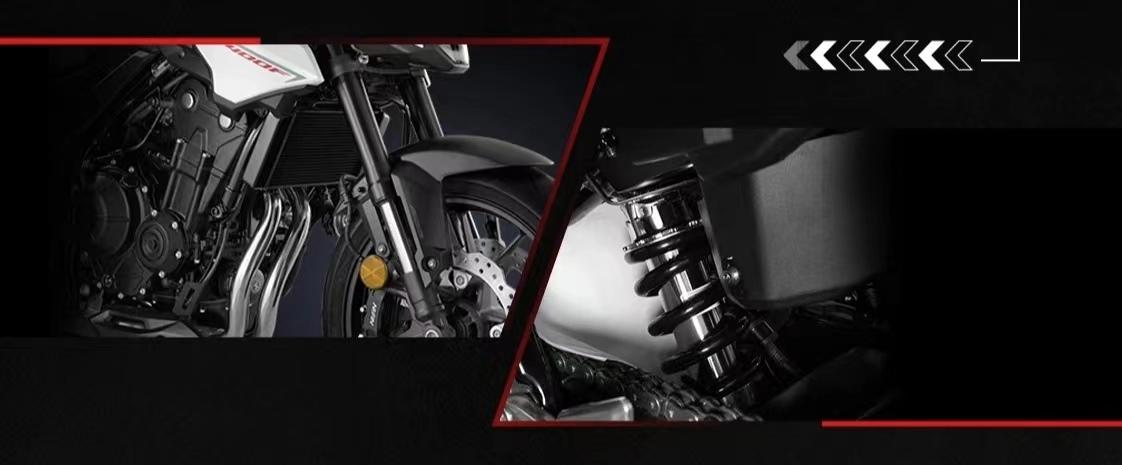 配置上也較為不錯(cuò),41mm倒置前叉+中置多連桿后減震,制動采用前雙碟剎配Nissin徑向四活塞卡鉗,后單碟剎,前后雙通道ABS,以及本田HSTC牽引力控制系統(tǒng),安全保障要高Z400一頭。