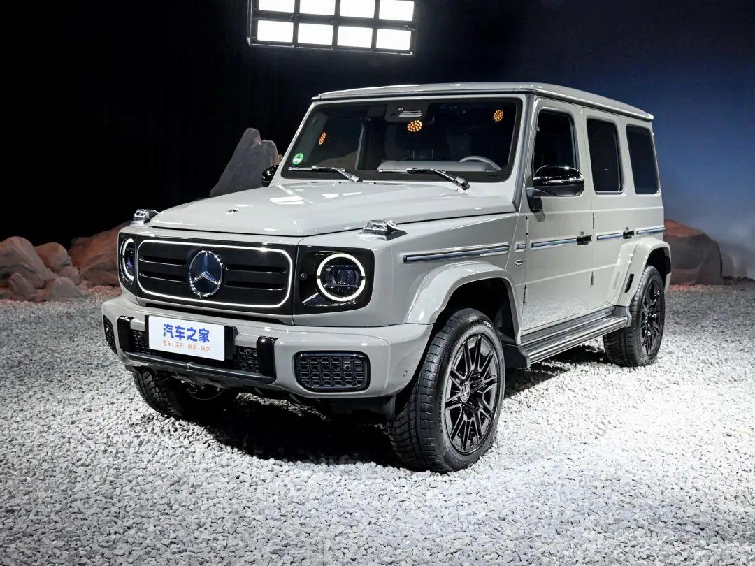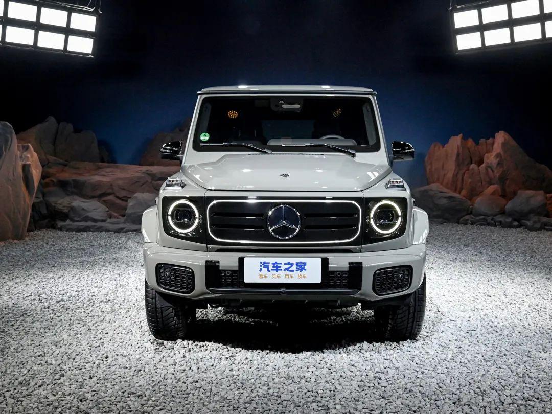 從外觀設計來看,無論是之前的EQG概念車,還是如今首發亮相的G 580,在設計上都是保留了G級經典的設計元素,也就是方盒子+圓形大燈,能讓人一眼看出這是G級家族的產品。相比于概念車的圓潤和科技感,純電G級越野車更加硬朗,中網采用橫向飾條點綴,中網的邊緣燈帶可以點亮,前包圍兩側的裝飾件采用矩形造型,突出硬派氣質。車身配色方面,新車將提供啞光南海藍色車漆、曜巖黑色金屬漆、啞光貝母白色車漆、貝母白(亮色)車漆和經典灰色非金屬車漆。