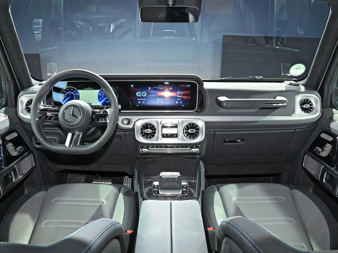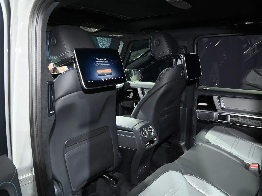 內飾方面,G 580與G 500也幾乎沒什么太大的區別,中控臺的設計依舊“G味”十足,中央通道區域則搭配觸控面板以及一些銀色的裝飾板點綴,即便是純電動車也依舊能夠展現出越野+豪華+科技化相融合的質感。此外,新車的后排座椅靠背還配備兩個液晶屏,方便后排乘客進行娛樂。
