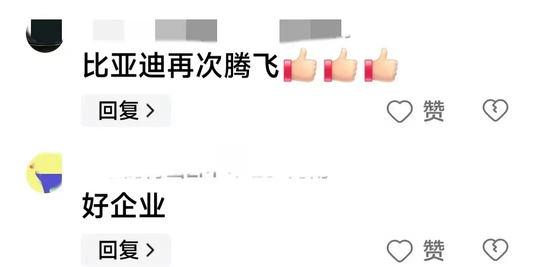 網(wǎng)友四,比亞迪好企業(yè),期望能再次騰飛。