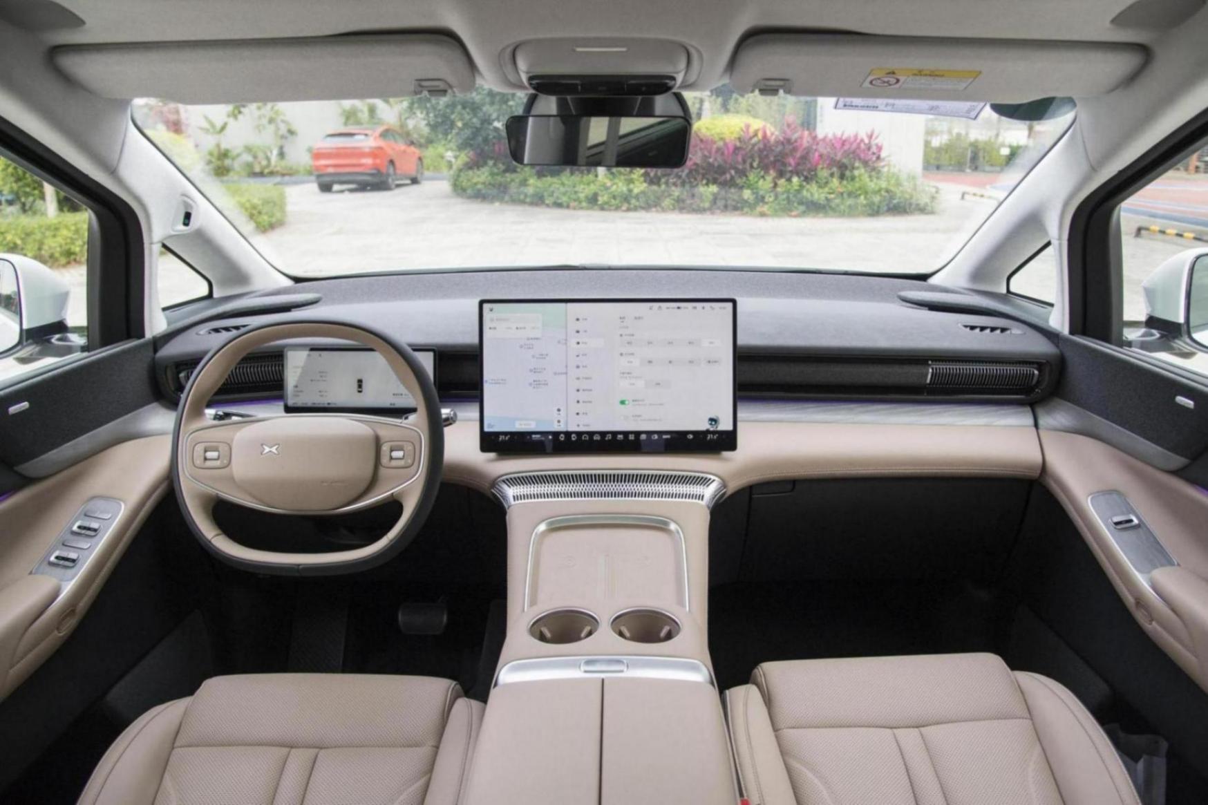 內飾方面,小鵬X9的內飾設計是比較有質感的,首先映入眼簾的是10.25英寸的全液晶儀表盤+17.3英寸的中控屏幕,中控屏幕的顯示效果較為細膩,內部集成多種功能,包括GPS導航系統、導航路況信息展示、道路救援服務、藍牙/車載電話、車聯網、OTA升級、面部識別等功能。