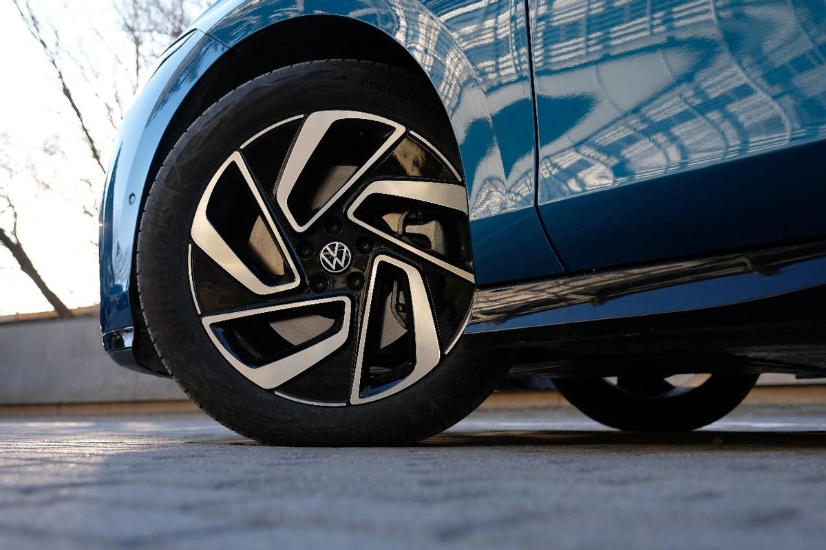 車身側面,我認為是ID.7 VIZZION最具美感的視角,轎跑式車身讓它擁有流暢的側面線條,前移的A柱以及短小車尾,讓這臺車更為干練。2965mm的軸距在同級別表現比較搶眼,滿足日常使用自然不成問題。