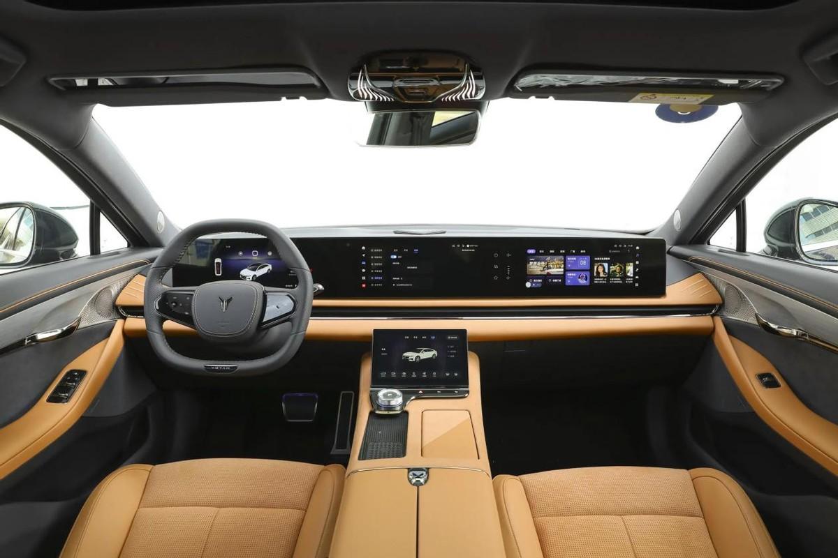 座艙部分,追光PHEV將傳統豪華品牌轎車的檔次感,與新能源轎車的科技感進行了融合。它的車內使用了大面積的軟性皮質材質,搭配棕色與黑色內飾配色,有著不錯的豪華氛圍;而它的中控臺則被一體式三聯屏“霸占”,正中央下方還有一塊用于快捷控制的觸控屏,在它們的襯托下,車內塑造出更加強烈的現代化氣息。