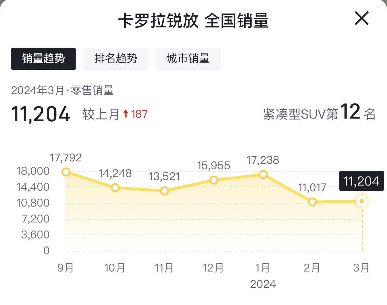 現(xiàn)在優(yōu)惠后起售價都不到10萬了,而且起步就是2.0升的動力,全系標(biāo)配7氣囊+L2級駕駛輔助系統(tǒng),難怪3月份一汽豐田卡羅拉銳放又賣了11,204輛,近半年來,每個月的銷量均在萬臺以上,個別月份銷量甚至超過了1.7萬輛。其實(shí)一汽豐田卡羅拉銳放的上市時間也不長,憑啥它就能持續(xù)保持高銷量呢?