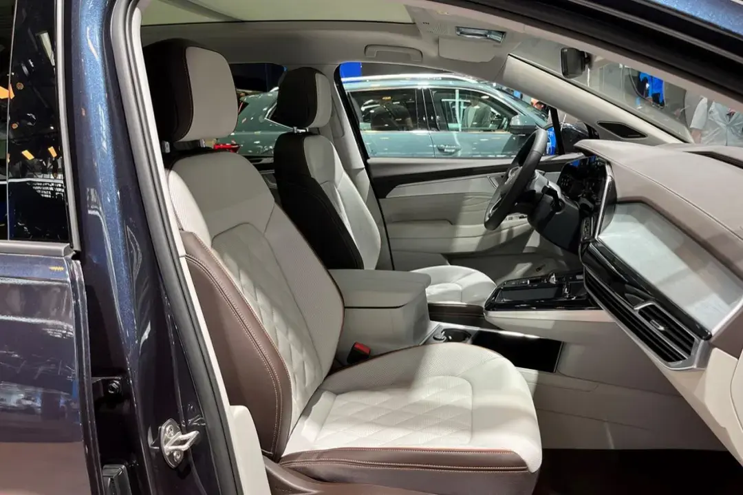 看到外部尺寸大家其實就已經開始想象攬境的內部空間了,但其實它空間會比我們想象的更好,因為攬境誕生于MQB平臺,采用了更適合家用的橫置布局,動力單元侵占的空間更少,留給乘坐的空間更大。在座椅布局方面,攬境提供6座和7座兩種選擇,這次在展臺上我們實拍的6座版本。