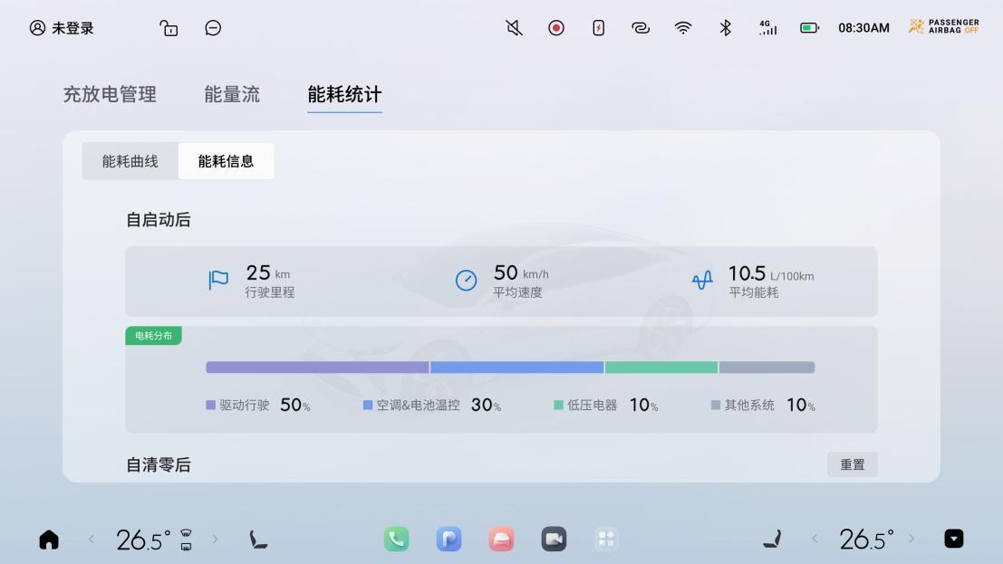 此外,還新增能量能耗分布顯示,可以將車輛的能量消耗按照系統(tǒng)模塊進(jìn)行統(tǒng)計(jì)顯示,使駕駛員能夠更加明確地看到各個(gè)系統(tǒng)消耗地能量百分比,電耗分配一目了然。