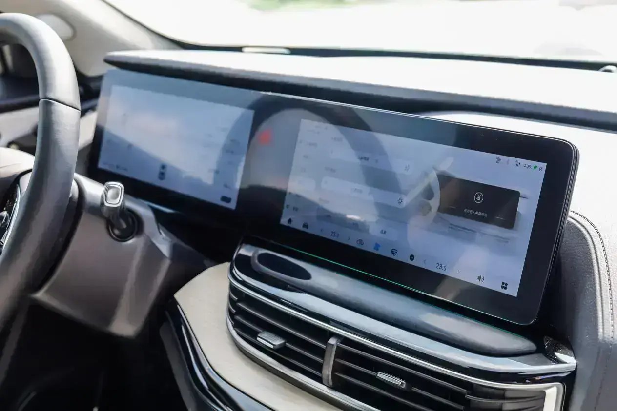 步入舒享家車內(nèi),雙拼色的座艙配色營(yíng)造出溫馨的氛圍。雙12.3英寸的連體大屏基本將所有的車載功能囊括其中,換擋機(jī)構(gòu)采用懷擋設(shè)計(jì),中央扶手處除常規(guī)的儲(chǔ)物空間與杯托外,還支持50W的手機(jī)無(wú)線快充功能。中控區(qū)域并沒(méi)有過(guò)分的設(shè)計(jì),僅保留空調(diào)出風(fēng)口與木紋裝飾面板。