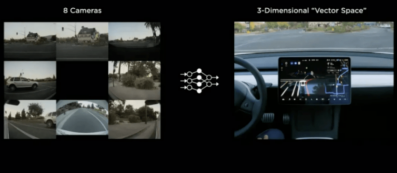 好比是一個從高處統觀全局的“上帝視角”,車上多個傳感器采集的數據,會輸入到一個統一模型進行整體分析推理生成鳥瞰圖,能有效地避免誤差疊加。